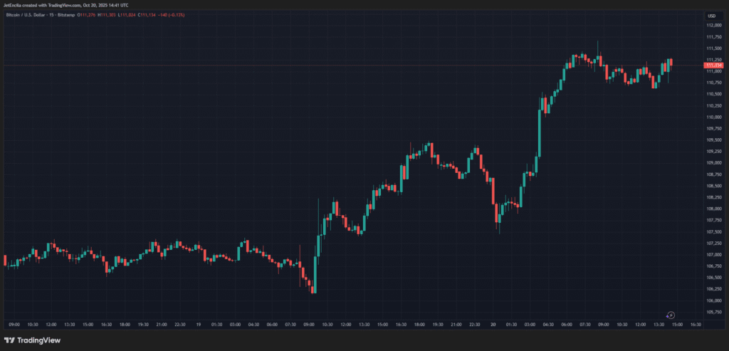BTCUSD giao dịch ở mức 111.075 đô la trên biểu đồ 24 giờ: TradingView