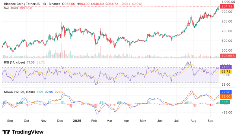 - Giá BNB lập đỉnh lịch sử $962, chuyên gia dự báo khả năng vượt mốc $1,000 nhờ lực cầu mới.